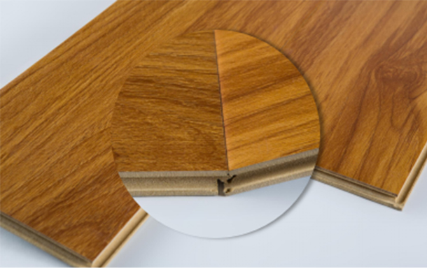 多层结构组合,采用纯进口双倍压机,每一块地板经过冷压400T、热压800T压力,层层舒展,贴面紧凑。