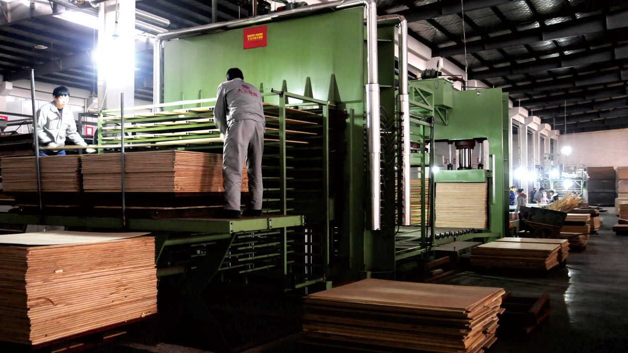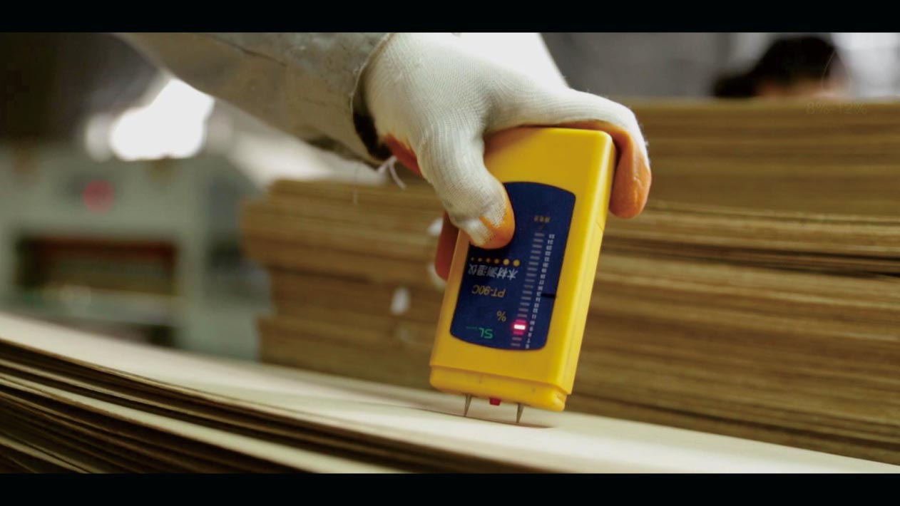 将切锯好的产品按井字格搭好架子,使产品每层能独自呼吸,后放于专用的恒温平衡窑中,设定40±5℃的温度中处理6天以上,关闭温度让其自然降温至20-25℃,在自然空气湿度中养生7天后转入下一道工序 生产,整个过程迅速降低甲醛含量。