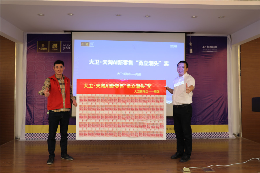 营销部总监蒋总为大卫镇海店周总颁奖,周总分享了精彩的心得及自身经验,让在座的大卫家人们借此机会互相取经,取长补短,受益匪浅,赢得在座的赞声一片。