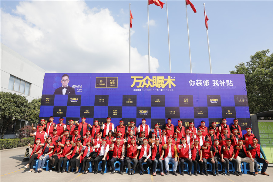 10月10日,大卫工厂总部,万众瞩木(第三季)“你装修 我补贴”启动会正式召开!什么是万众瞩木?这是大卫品牌2018年起自创的“造节日”,活动时间为每年的11月。其核心是“两品一促一服务”:品味“木文化”、品读工匠精神、尊享年度大促,保养服务月活动。惠民行动,千店同步,感恩答谢客户!