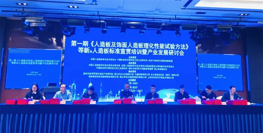 2023年3月22—24日,GB/T 17657—2022《人造板及饰面人造板理化性能试验方法》等新颁布标准宣贯培训暨产业发展研讨会在浙江南浔举行。大卫地板应邀出席会议,获颁国家标准GB/T 18103-2022《实木复合地板》、GB/T 41547-2022《地采暖用木质地板》制修订工作证书,并荣获“全国人造板标准化技术委员会成立30周年人造板标准制修订突出贡献奖”,董事长蒋卫荣获“卓越贡献奖”,研发检测部总监喻立春荣获“优秀单位委员代表”。