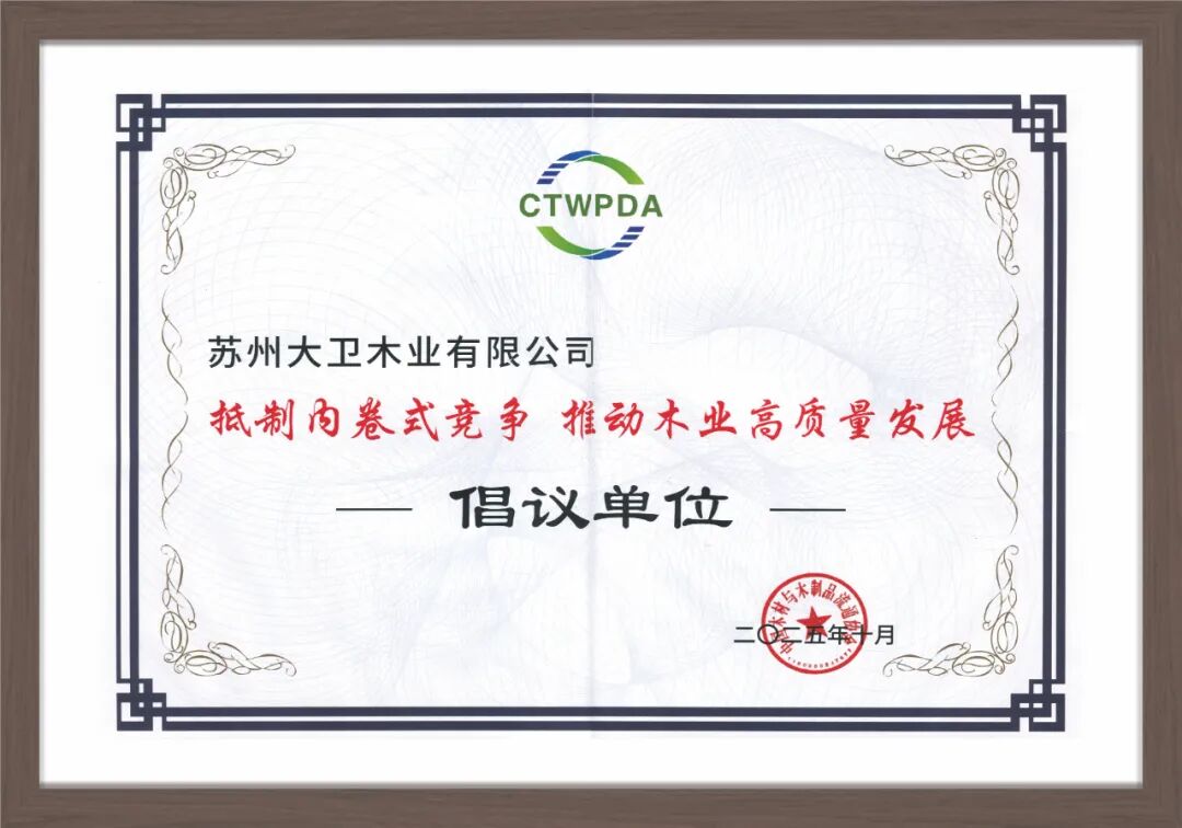 10月29日,由中国木材与木制品流通协会主办的2025中国绿色家居产业发展大会暨中国木业科技大会在浙江德清隆重召开!大会汇聚行业领导、权威专家及木业企业代表共计350余人,以“科技创新・智领未来”为主题,发起了中国木业百家企业联合倡议“抵制内卷式竞争 推动木业高质量发展”活动,大卫地板获颁“2025中国地板匠心品牌”。